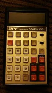 The APF MARK 68r is a scientific calculator with 8 digits precision and algebraic logic. It has 25 functions, 28 keys and a VFD (vacuum fluorescent) display. The power source is Sealed battery pack.