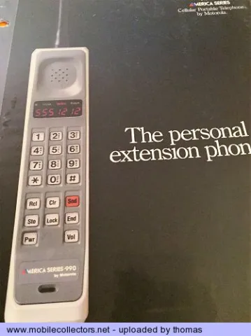 Motorola America Series 990 is a mobile phone released by Motorola in 1987. Similar to Motorola DynaTAC 8000M.