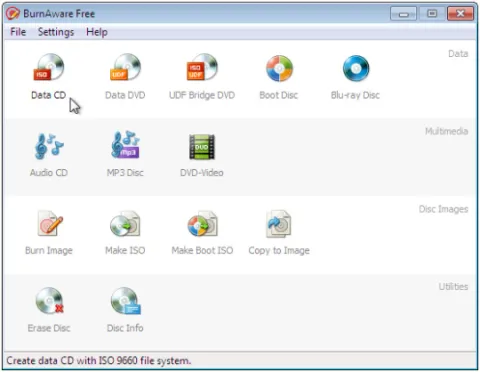BurnAware Free is a full-fledged disc burning tool - fast, lightweight, feature-packed and, most importantly, free. The program burns all types of CD, DVD and Blu-Ray discs containing data, digital photos, music and video. With BurnAware Free, you will be able to create bootable or multisession CDs and DVDs, high-quality audio CDs, make and burn disc images, copy and backup discs.