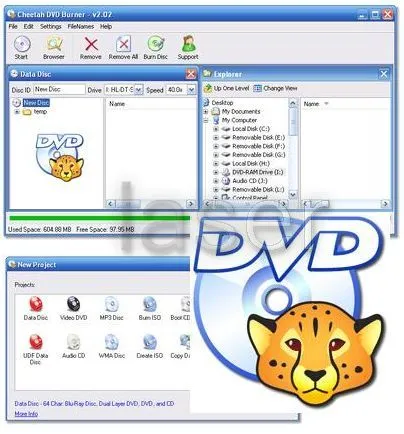 Burn Blu-Ray, Dual Layer DVD, DVD, and CD discs. Burn Audio CDs from MP3, MP2, WMA, AVI, OGG and WAV files. Also convert video files to MPEG, FLV, AVI, WMV, MP4, MOV, and Animated Gifs. Video files can also be converted to MP3, MP2, AVI, OGG and WAV files. Make NTSC or PAL DVD's from MPEG, VOB, FLV, F4V, 3GP, DivX, AVI, WMV, MP4, MOV video files. This program includes the ability to view, burn and create ISO files. It supports DAO and TAO burning modes for all disc types. The Cheetah DVD Burner is a lite and fast disc burning program that is easy on the system resources.