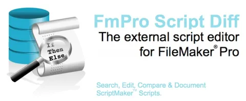 FmPro Script Diff compares, edits, searches and stores FileMaker ScriptMaker scripts - outside the FileMaker database. Changed scripts are compared on a line-by-line basis and displayed with color coded tags to the left of each modified line. Interline changes are also highlighted to indicate Changed, Added or Deleted text. Each script’s XML source can be manually edited or updated via the Search & Replace feature, and pasted back into FileMaker Pro.
