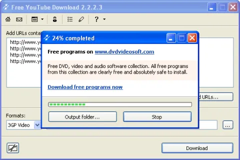All SoftwareFree YouTube Download is one of the most usable programs on the web to download YouTube videos, single videos as well as whole collections such as: complete playlists and show lists; users' channels; all videos from personal playlists (History, Liked, Favourites, Watch later, etc.) artist's playlists; videos from Movies Category; videos from Music Category; videos from YouTube charts; video responses.Free YouTube Download combines simplicity of usage as well as advanced downloading features which you can set as you like: download videos in original YouTube quality or convert them to AVI, MP4, WMV; enjoy multistream downloading; customize output name easily; save and load links from external text files; save download history; import videos to iTunes automatically; download videos which require YouTube authorization via Firefox, Internet Explorer and Google Chrome; enable compatibility with screen reading software.