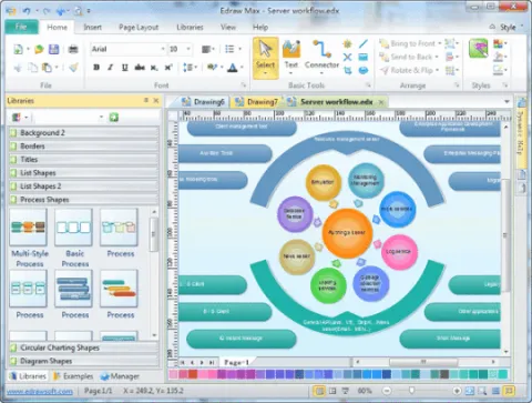 All SoftwareEdraw Max enables students, teachers, and business professionals to reliably create and publish kinds of diagrams to represent any ideas. Edraw provides you a versatile, easy, quick and professional solution to let you enjoy your working. In a corporate environment, the folks over in human resources need to be able to create organizational charts, some business presentations, and maybe some directional maps and building floorplans to guide visitors through the facility. But, in the same company, the programmers and engineers also need software that lets them build UML diagrams, workflows, program structures, web design diagrams, electrical engineering diagrams, and database diagrams. What's the solution? Buy one graphics program that suits one group but forces the other to compromise and make do? Or purchase two separate graphics programs for each department's special needs and hope that your company approves the purchase? What about none of the above? Edraw Max lets you create charts and diagrams to suit all of these requirements.