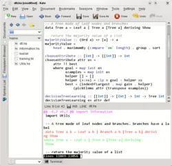 In computing, Kate is a text editor by KDE. The name Kate is an acronym for KDE Advanced Text Editor. Kate is a full-featured programmer's editor with syntax highlighting for over 200 filetypes.[2] The syntax highlighting is extendable via XML files and can also specify code folding rules.[3] It has support for search and replace using regular expressions and supports auto-detection of file encodings. Supported encodings include UTF-8, UTF-16, ISO-8859-1 and ASCII.