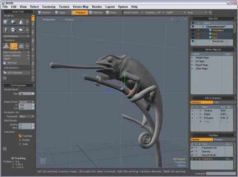 modo is a polygon and subdivision surface modeling, sculpting, 3D painting, animation and rendering package developed by Luxology, LLC. The program incorporates features such as n-gons and edge weighting, and runs on Mac OS X and Microsoft Windows platforms.