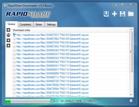 RapidShare Downloader is a download manager that downloads files from RapidShare.com automatically. RapidShare Downloader, downloads files one by one and waits RapidShare.com's Wait-Time period for next file. RapidShare Downloader developed for downloading files from RapidShare easily.