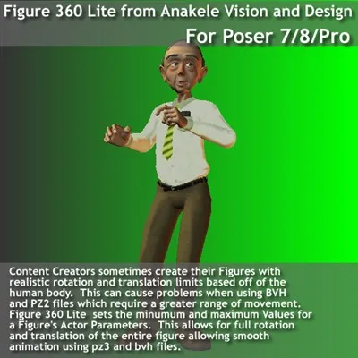 While working as a consultant/animator providing custom animation on a project my client complained that the animations I sent to him (in bvh and pz2 file format) weren't applying to the Professor (Gramps from 3D Universe) in the animation correctly. The client really wanted to use this character. After a few nervous e-mails back and forth I realized that the Figure's arms and legs (as well as other body parts) had limited range of motion so I created a script that would unlock the full potential of the character.