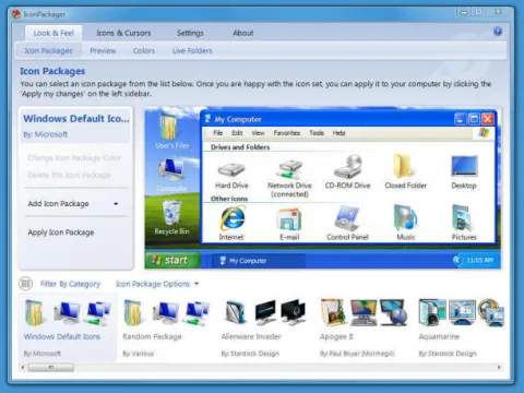 What makes IconPackager special is that unlike Microsoft's themes which only change a few icons, IconPackager changes hundreds of icons. A package of icons contains icons to replace most of the common icons on your Windows PC.
