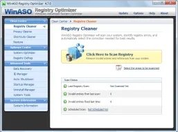 WinASO Registry Optimizer is an advanced registry cleaner and optimizer for Windows that allows you to safely clean and repair registry problems with a few simple mouse clicks. By fixing the obsolete information and adjusting the parameters in the Windows Registry, it significantly speeds up your system. WinASO Registry Optimizer is well designed to fix common problems such as denied access to missing drives and disks and illegally modified Internet Explorer pages. Substantial testing has been done on this software to ensure the safety of your system. We have not received any complaints about the system stability. Meanwhile, WinASO Registry Optimizer offers a groups of powerful tools including Privacy Cleaner, Shortcuts Cleaner, IE Manager, System Optimizer, Data Recovery, Uninstall Manager, etc, to allow you easily optimize and manage your system at your finger tips.